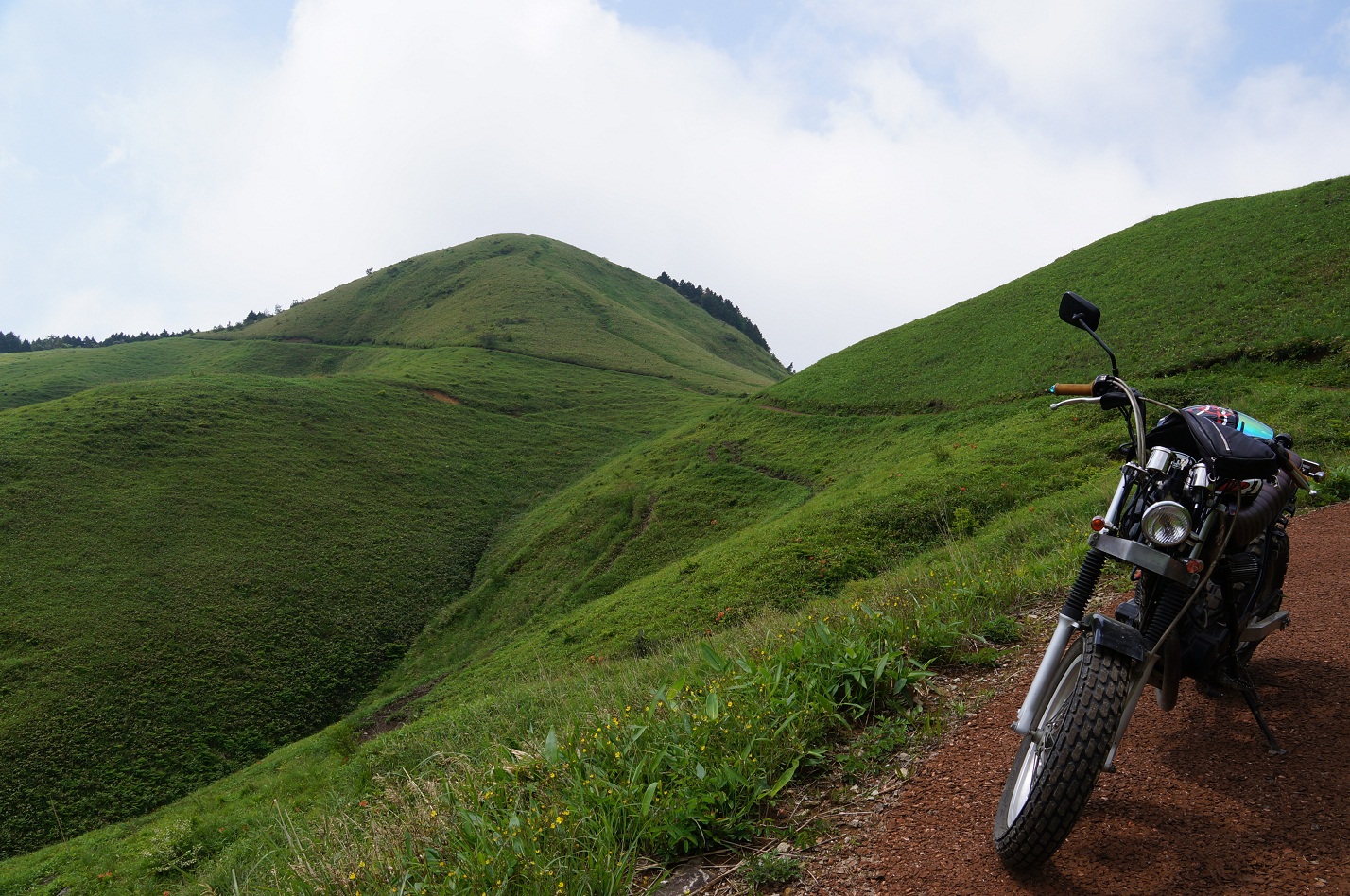 やっと雨は上がり、萱野高原。雲は多い。