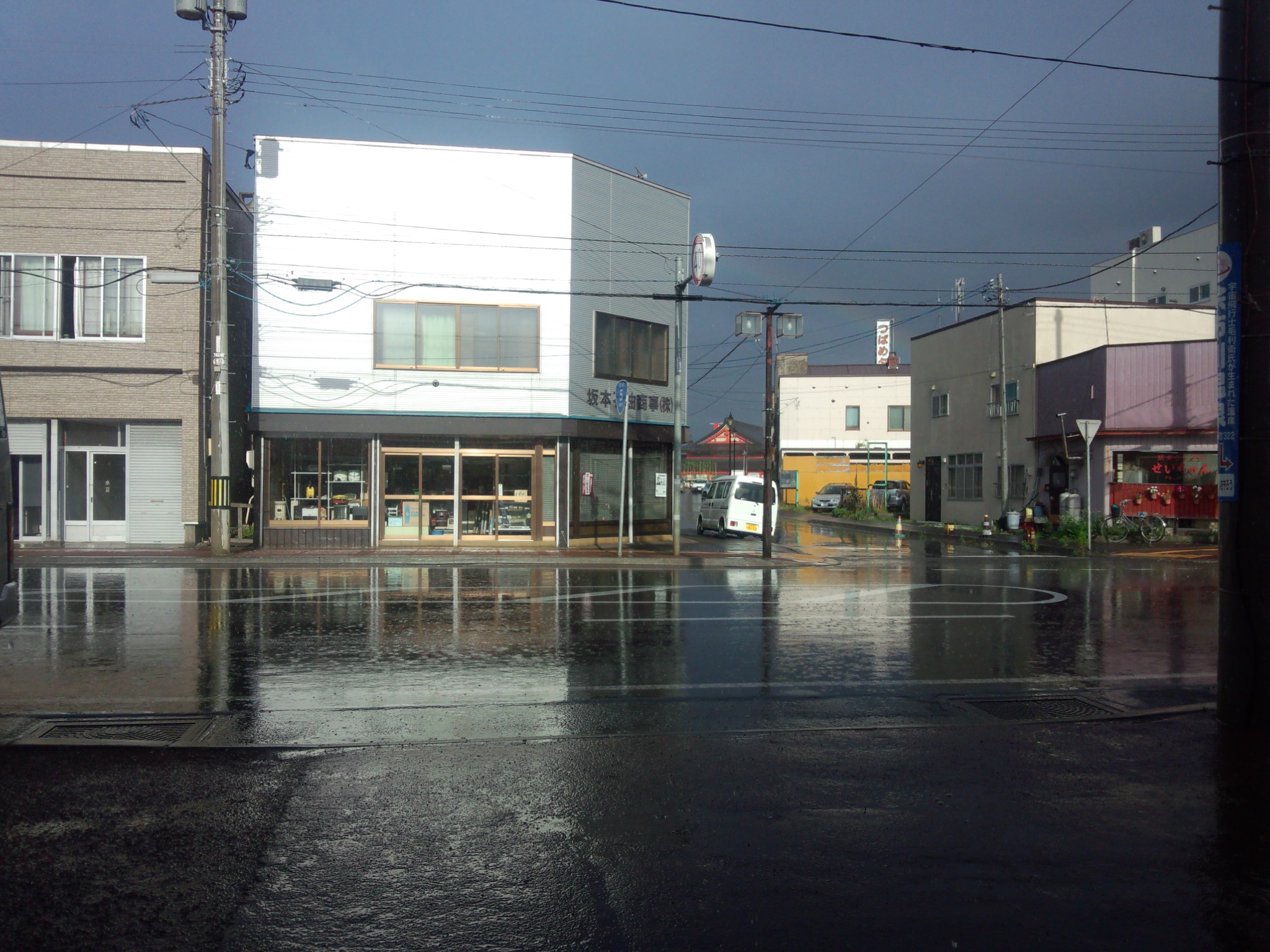 なんてことない町中なんだけど、路面に反射した建物とかが不思議と幻想的だ